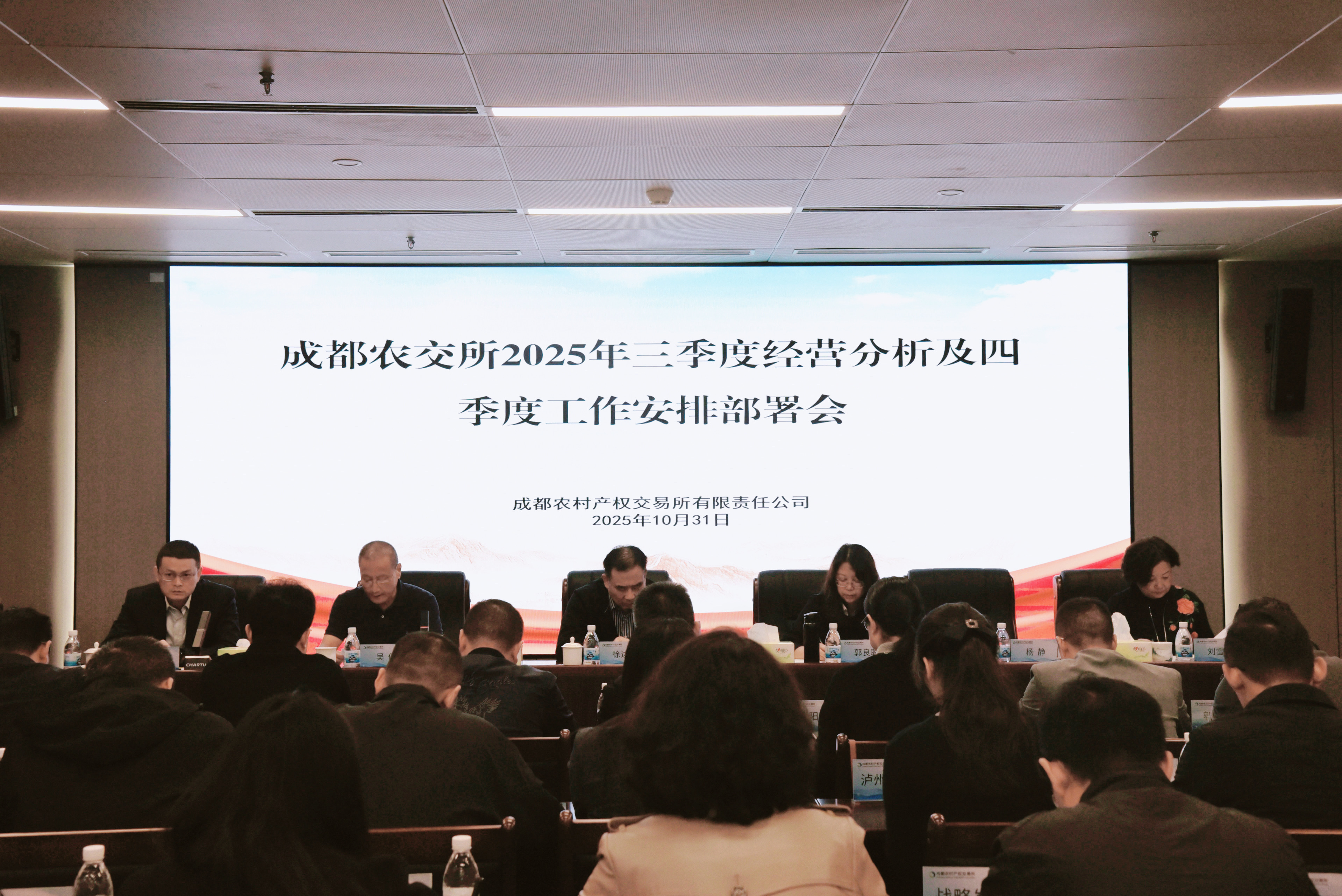 2025年10月31日上午,成都农交所召开2025年三季度经营分析及暨四季度工作安排部署会,全面总结三季度经营工作成效,分析当前发展形势,部署四季度工作任务。公司班子成员,各部门、直属经营单位(中心、站)、各分公司及各子公司负责人参加会议。